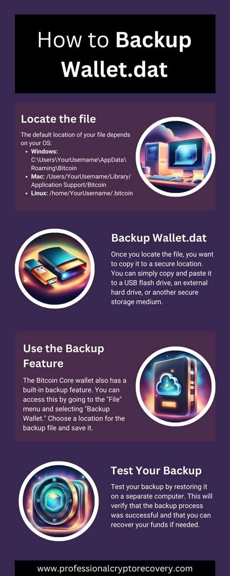 A crucial step in Bitcoin security is backing up your wallet file. This ensures that if your primary device is lost or damaged, you still have access to your funds. Never rely solely on one backup method; always create multiple copies in different locations.